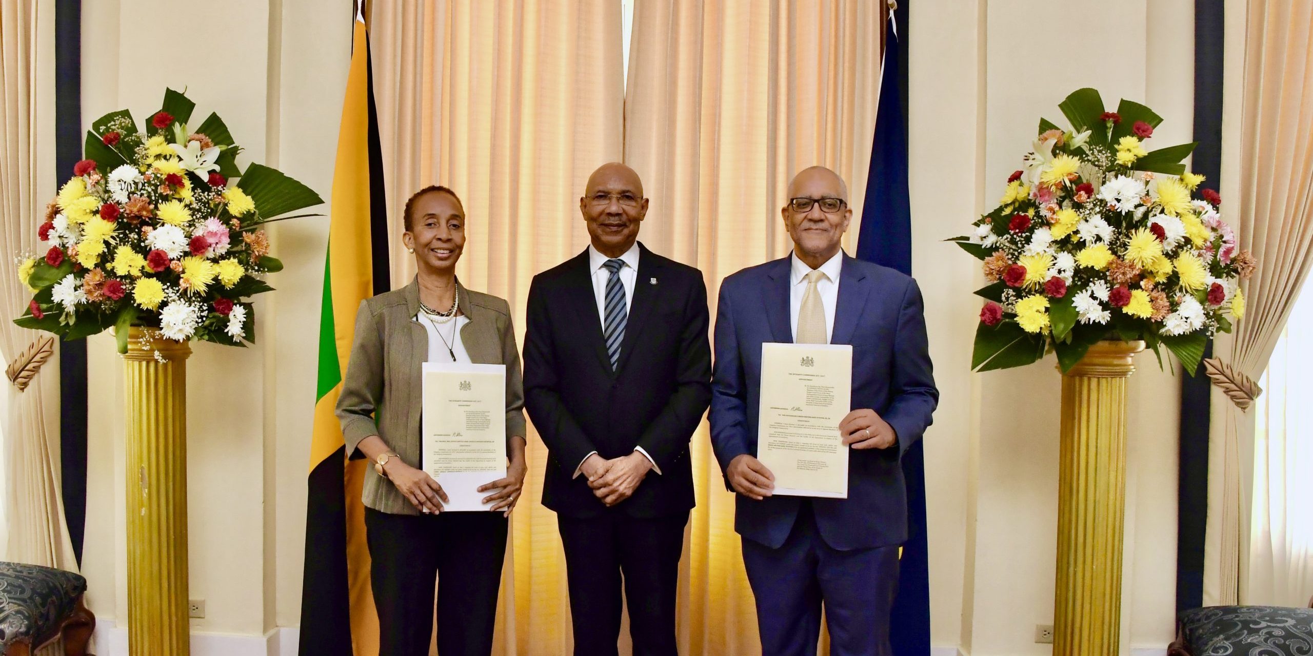 His Excellency Sir Patrick Allen has appointed The Hon. Brian Wynter, OJ, CD, and The Hon. Mrs. Justice (Ret’d) Carol Lawrence-Beswick, CD, as members of the Integrity Commission at King’s House today.